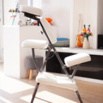 Il Trattamento su Sedia da Massaggio si svolge comodamente nel tuo luogo di lavoro o negli spazi dedicati durante gli eventi organizzati, indossando i tuoi normali vestiti senza necessità di cambiarti, sedendoti sull’apposita Sedia da Massaggio, con il viso appoggiato sul cuscino/ciambella regolabile coperto da un rivestimento di cotone usa e getta, le braccia appoggiate al supporto anteriore e le gambe piegate indietro in appoggio.